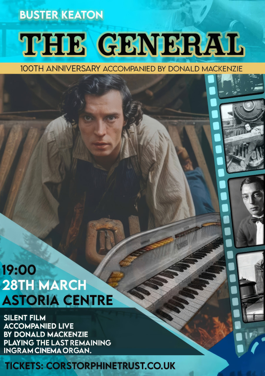 Donald Mackenzie returns to the Astoria Centre to accompany Buster Keaton’s silent masterpiece The General in its 100th anniversary year.